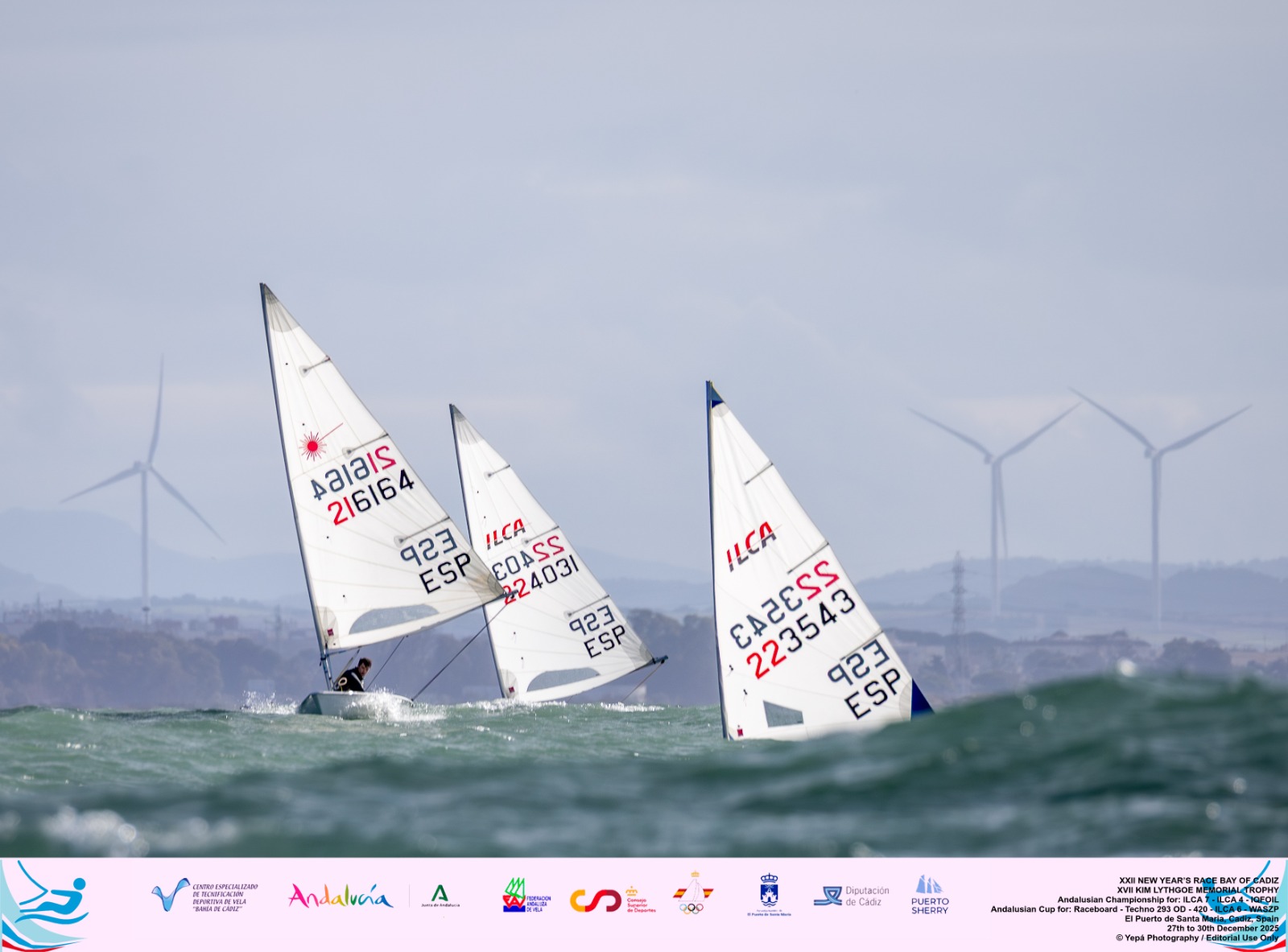 También en las clases ILCA los favoritos han demostrado solidez. En ILCA 7, Roberto Aguilar (CNM Benalmádena) ha firmado un liderazgo incontestable al ganar las cuatro pruebas disputadas, situándose con una cómoda ventaja sobre José Medina (CN Sevilla) y José Manuel Vargas (CAN Eslora). En ILCA 4, Gonzalo Martín (CNM Benalmádena) encabeza la clasificación absoluta y Sub 16 gracias a tres victorias, seguido por Pablo Delgado (CN Sevilla), primer Sub 18, y por Felipe Pachón (CNM Benalmádena), segundo Sub 16. Entre las chicas, domina la canadiense Aria Miller (Sub 16), seguida por June Olazabal (Hondarribia, Sub 18) y la sevillana Beatriz Serrano, segunda Sub 16.