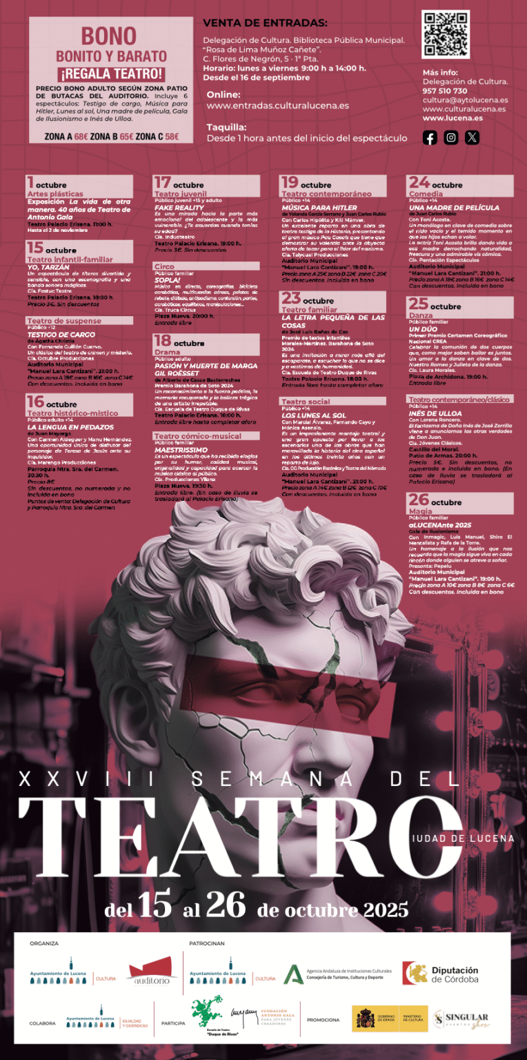 - Patrocina: Delegación de Cultura, Agencia Andaluza de Instituciones Culturales (Consejería de Turismo, Cultura y Deporte) y Diputación de Córdoba.